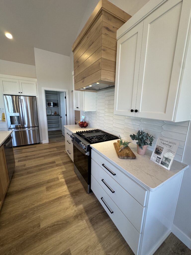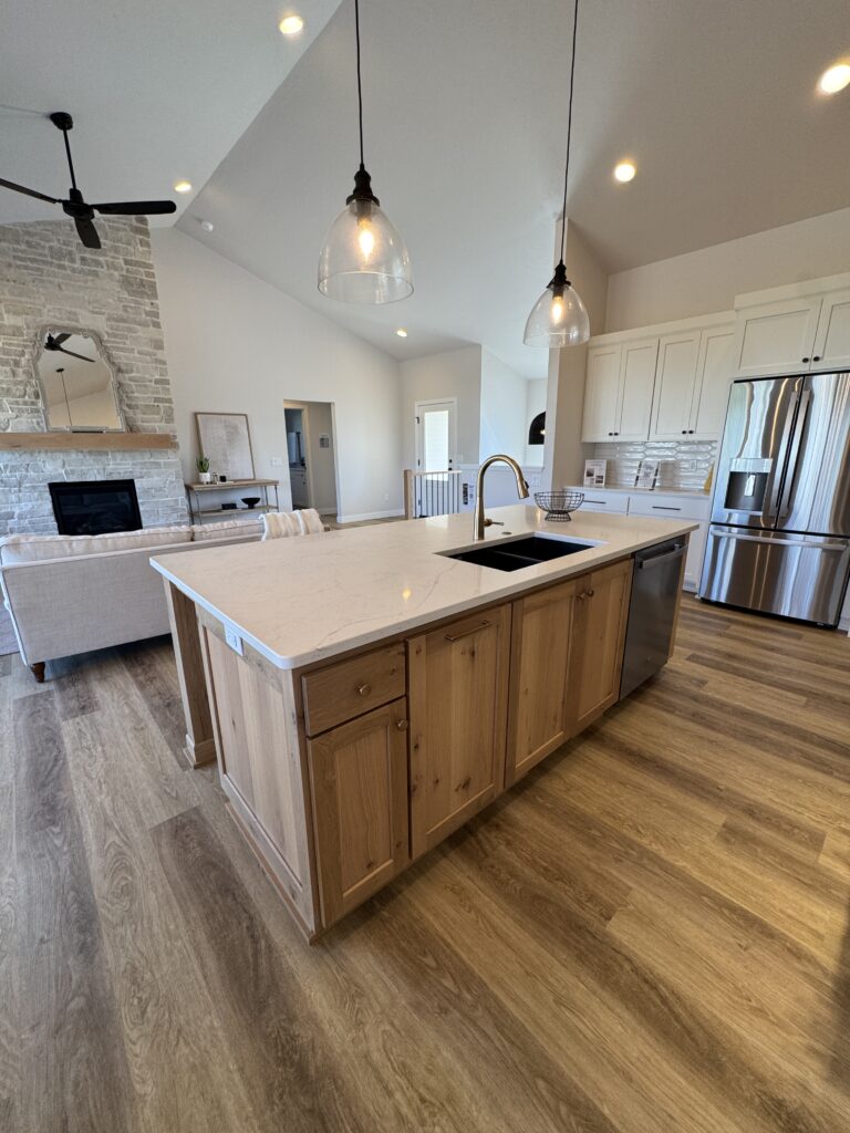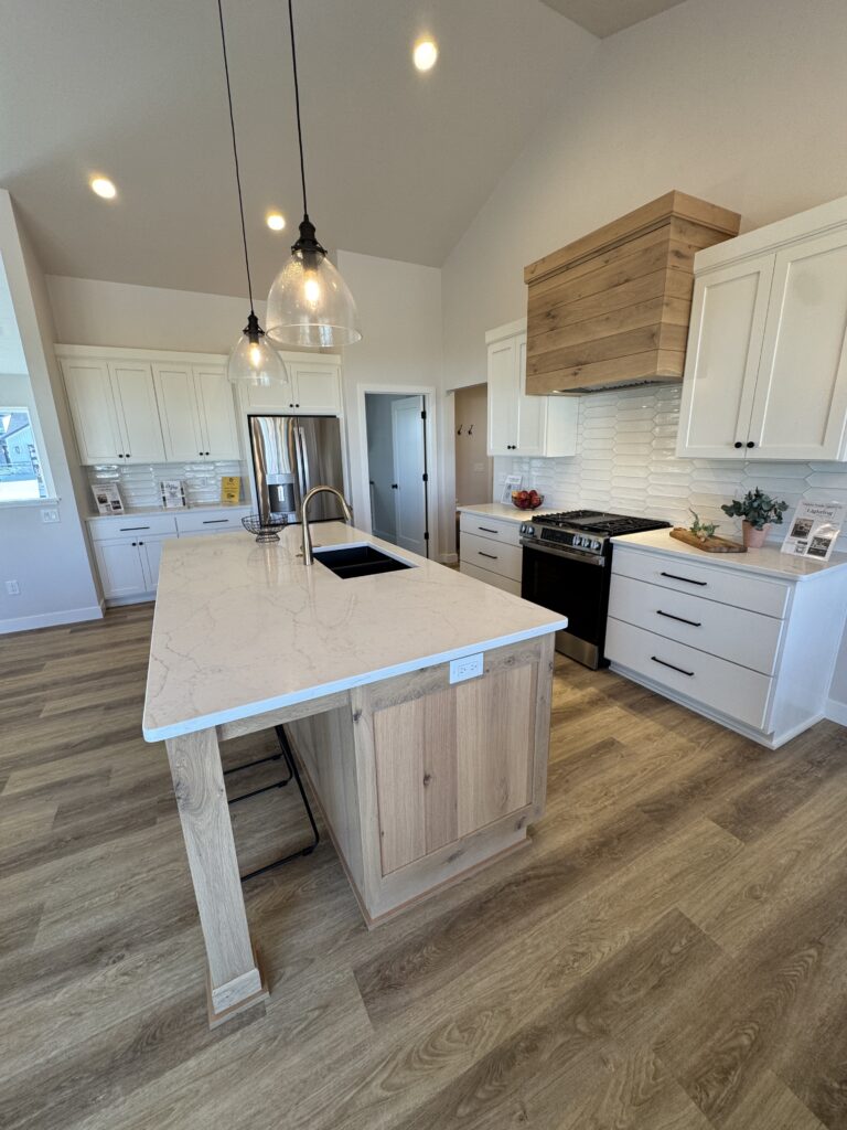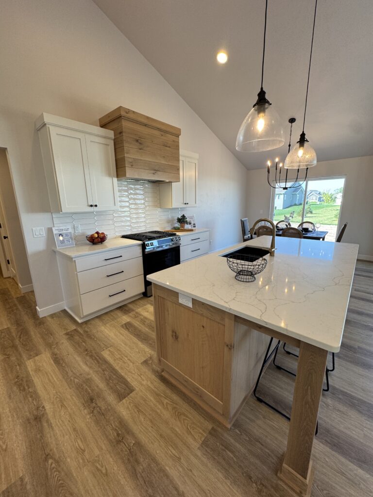 1,805 Sq. Ft. version of Virtue Homes’ popular Mimosa plan. Open-concept kitchen, living, and dining area with luxury plank flooring that ties the space together. The kitchen features an 8-foot island, custom cabinets with solid-surface countertops, and an impressive walk-in pantry.