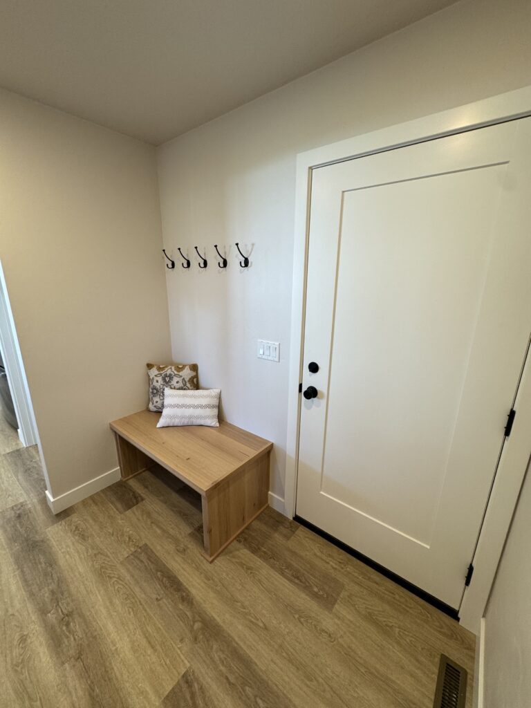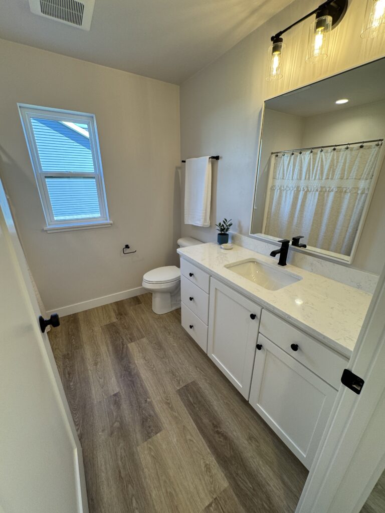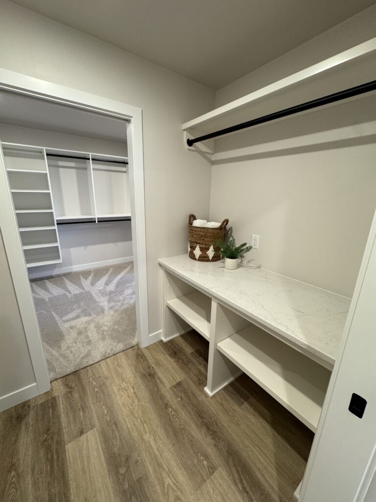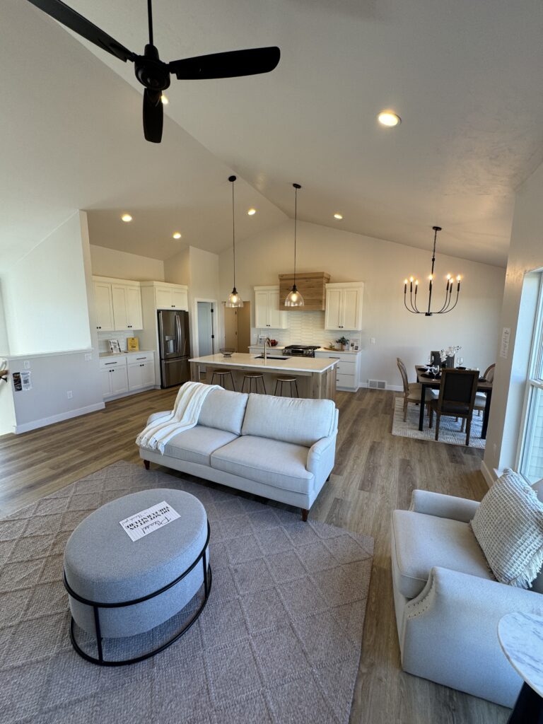 1,805 Sq. Ft. version of Virtue Homes’ popular Mimosa plan. Open-concept kitchen, living, and dining area with luxury plank flooring that ties the space together. The kitchen features an 8-foot island, custom cabinets with solid-surface countertops, and an impressive walk-in pantry.